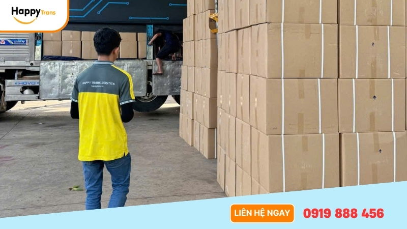 Nhận hàng & Đóng gói: Happytrans nhận tận nơi hoặc tại văn phòng, tiến hành đóng gói an toàn.