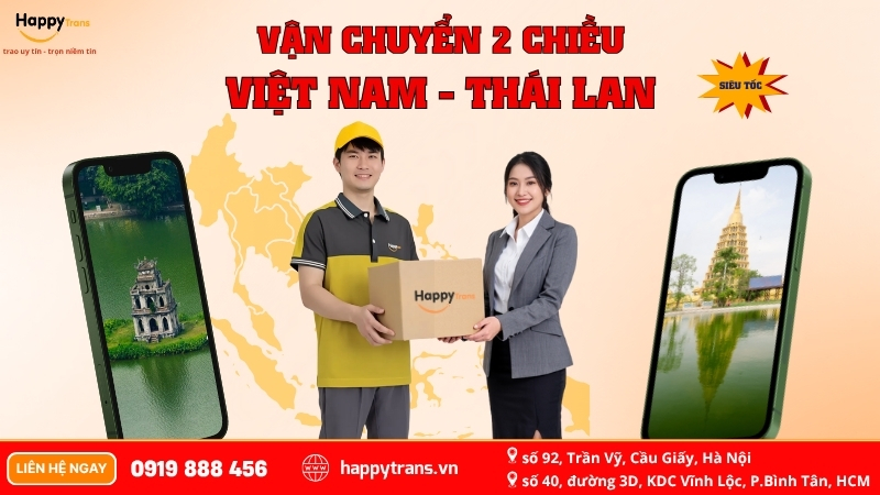 Dịch vụ gửi hàng đi Thái Lan của Happy Trans là lựa chọn hàng đầu cho việc vận chuyển hàng hóa đáng tin cậy và giá cả cạnh tranh. Với mạng lưới vận chuyển rộng khắp và kinh nghiệm lâu năm trong ngành, chúng tôi cam kết đưa hàng hóa của bạn đến đích một cách nhanh chóng . Chỉ từ 30k/kg quý khách đã có thể gửi hàng sang Thái Lan với chi phí tiết kiệm và an toàn nhất.